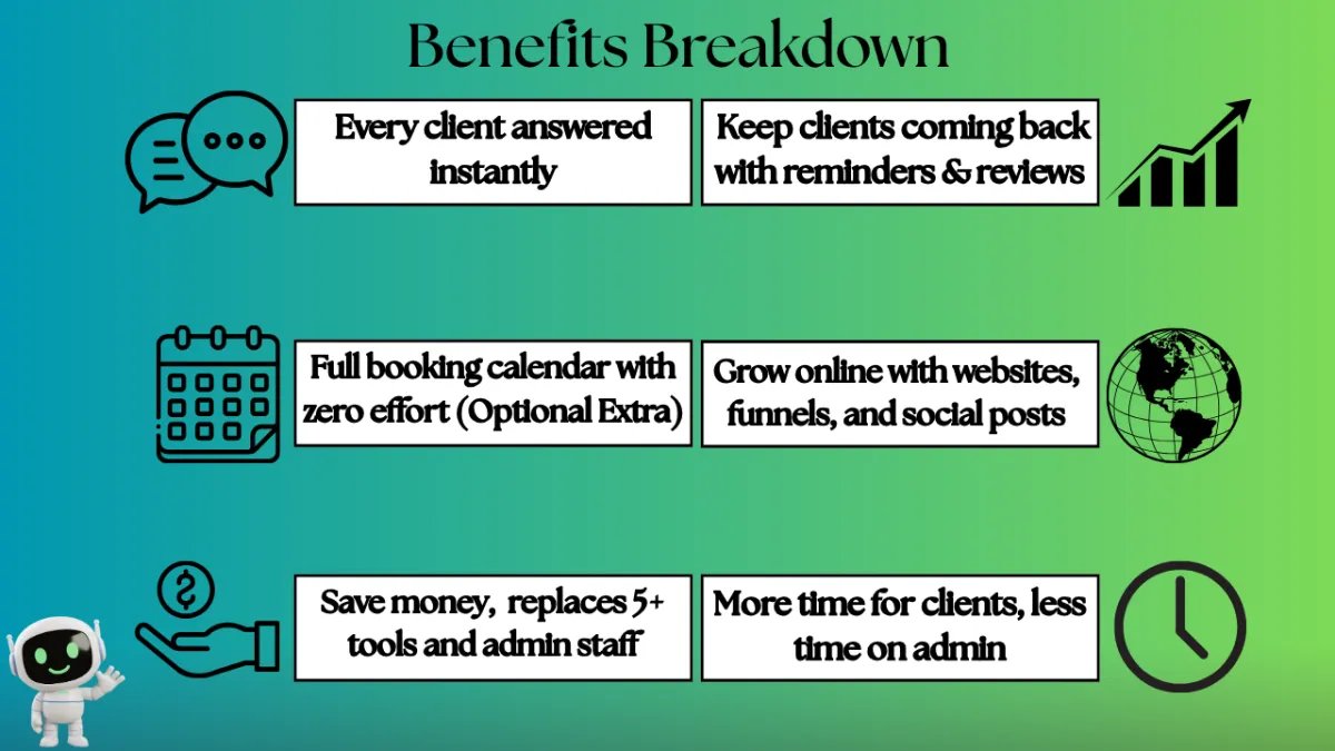 Stop missing calls, losing bookings, and wasting hours on admin. With BeautyBoss Suite, every client gets answered instantly, every appointment is managed automatically, and your business runs like clockwork.