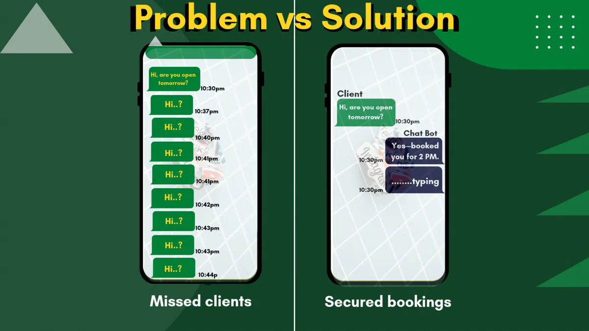 Before: Missed WhatsApps at night, double bookings, lost clients.